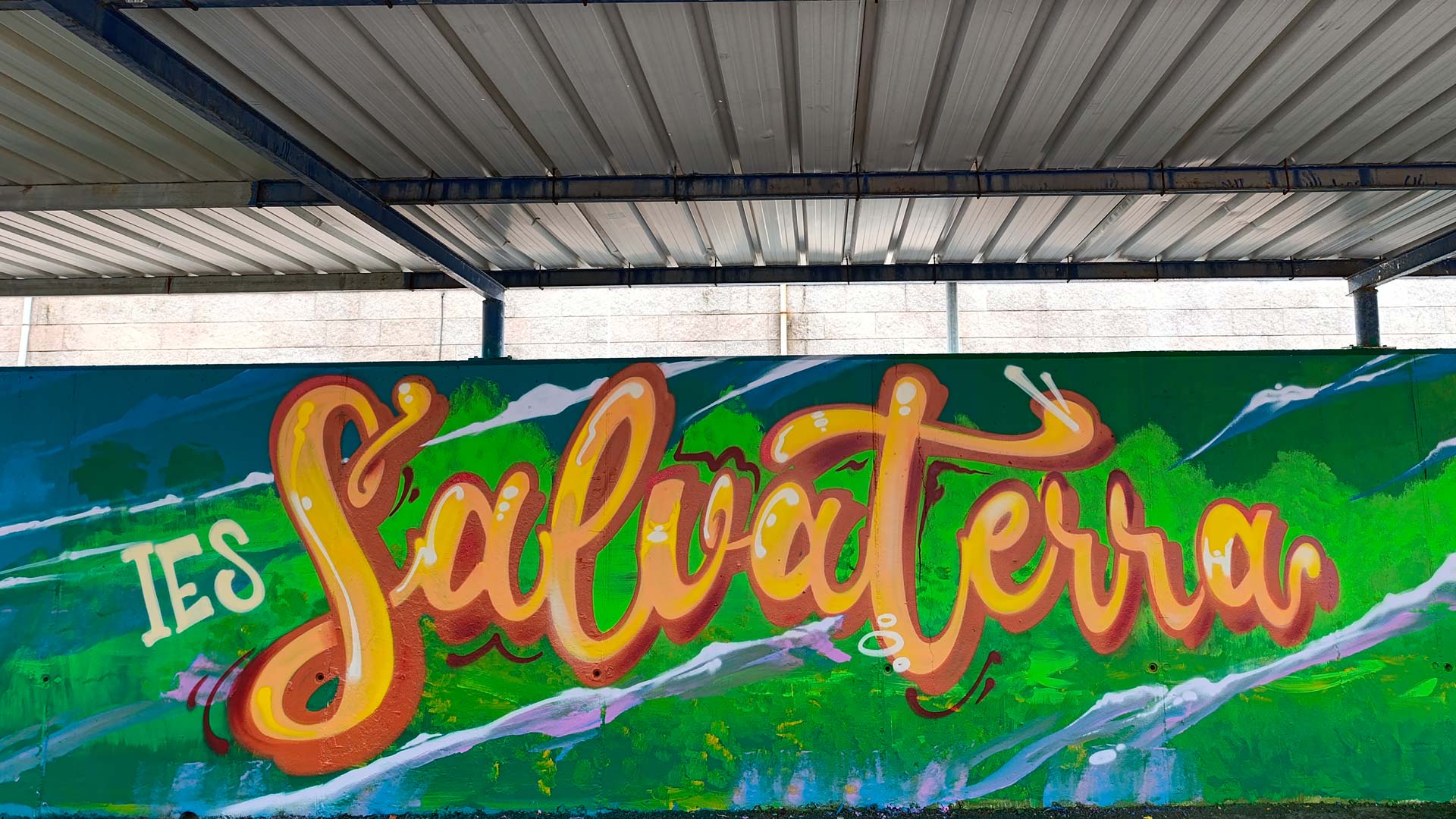 El tiempo fue justo, pero el plan de trabajo funcionó y logramos completar el mural dentro del plazo previsto. La colaboración del centro y del alumnado fue clave para avanzar sin interrupciones. El resultado final quedó instalado en la entrada del instituto como parte permanente del recorrido diario de estudiantes y profesorado.